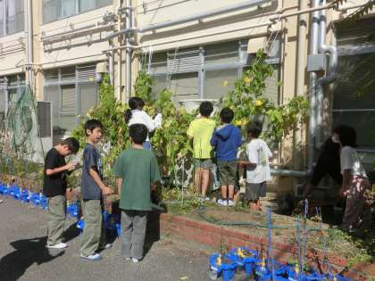 理科では、ヘチマの受粉について観察したり調べたりしながら考えました。