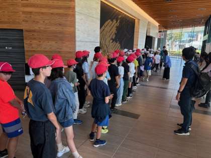 迫力あるシアターの鑑賞、様々な資料の展示、兜や刀剣に触れるコーナーなどで学習しています。