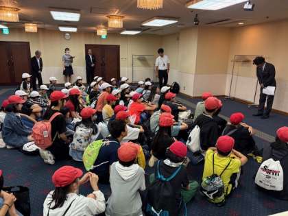 今夜の宿、名古屋クラウンホテルに到着し、入館式を行いました。食事やお風呂(温泉)が楽しみです♪お世話になります!