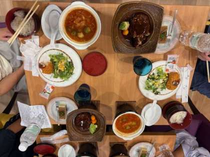 お風呂を終えて少しの休憩時間を過ごし、夕食です!いただきます!!