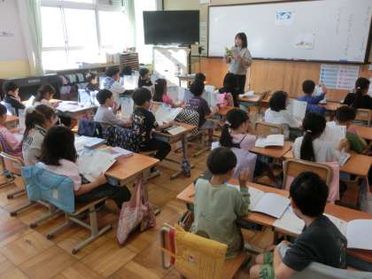 国語科では「くじらぐも」の学習です。情景を思い浮かべながら、みんなで元気に音読をしました。
