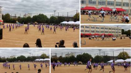 4年生は50mハードル走と団体演技。4年生らしくきりっとした演技が素敵で、特に印象的でした。