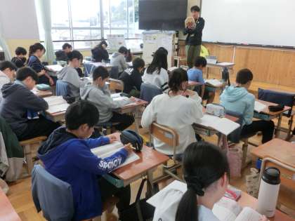国語科は「鳥獣戯画を読む」。まずは全文通読し、どんなことが書かれているのかを読み取ります。