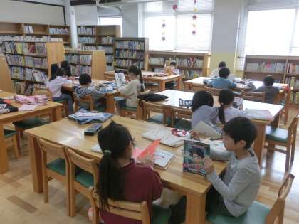 図書館では、本の貸し借りを行ったり、気になった本を楽しんだりしました。