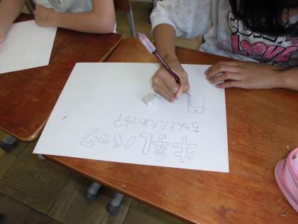 給食委員会では、牛乳パックのたたみ方のポスターを作りました。