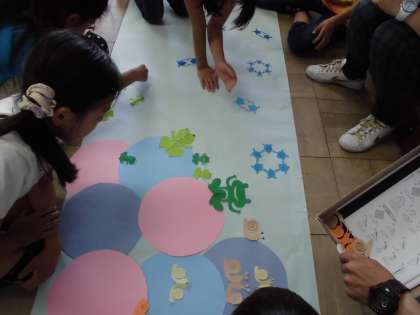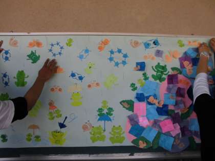 みんなで協力して、1つ1つ手作りで完成させていきます。1時間かけて、ようやく新しい掲示物が出来上がりました。