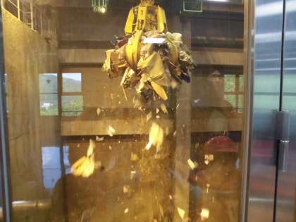 大きなクレーンがごみをつかむ様子を見て、大きな歓声が上がりました。