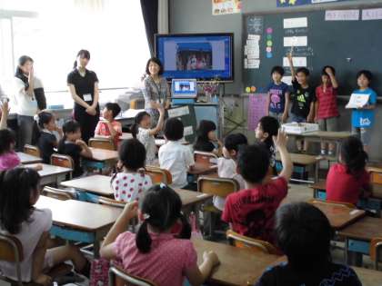 「町たんけん大発見」では、お店めぐりのことをグループごとに、大変大きな声で分かりやすく発表できました。クイズ形式など工夫されていて、保護者の方も関心を持って聞いていただけました。