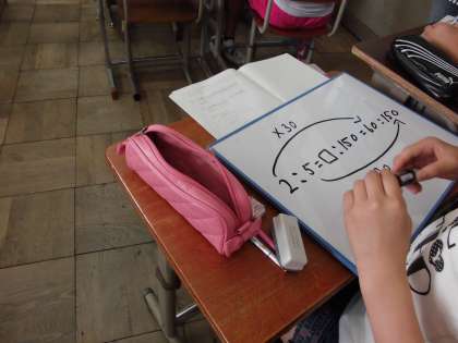自力解決として、まず、自分なりに工夫して解き方を考えます。