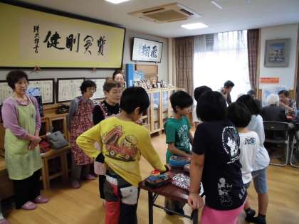 すこやか学級では、全学年が地域の方々から昔あそびを教わったり、戦争体験を聞かせていただいたりしています。