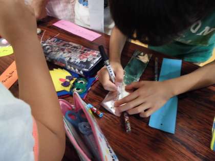 今日は、4年生と杉の子学級が七夕のささかざりをしていただきました。