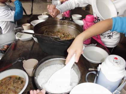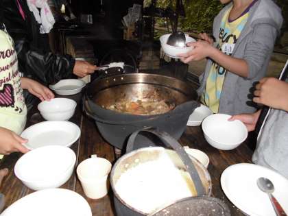 出来たてのすき焼きと炊きたてのご飯を盛り付けていきます。