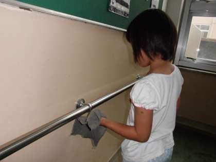 ほうきではくのはもちろん、ぞうきんがけをする子がたくさんいます。