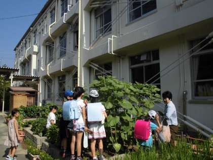 アサガオは種から育てて、ようやくきれいな花を咲かせてくれたので、子どもたちはとてもうれしそうです。