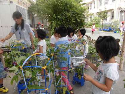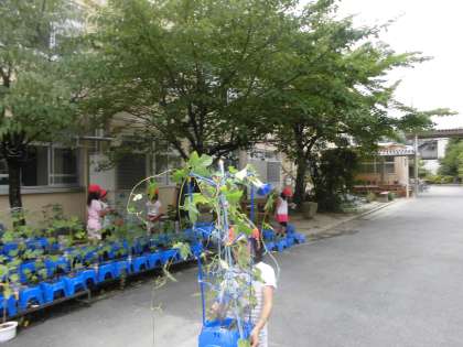 1年生が大切に育ててきたアサガオの花がきれいに咲いています。