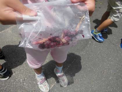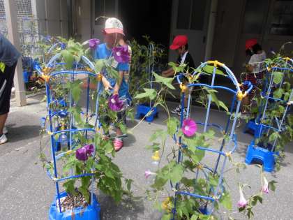 夏休みが終わってから、このアサガオの花の色水を使って、いろいろな物を染める予定です。