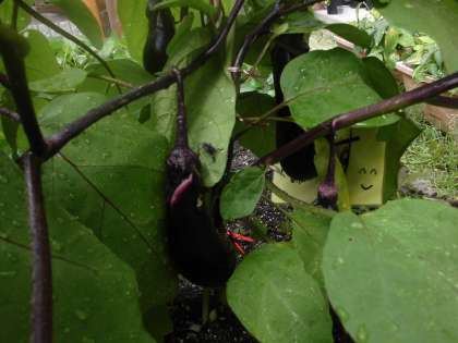 なすびは今までに何本も収穫しました。家で料理に使ってもらっています。花が咲くたびに実がなるので、大きくなるのが楽しみです。