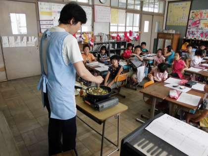 そして、みんなの前でなすびの炒め物(ごま油としょう油味)を料理してもらい、みんなで試食しました。