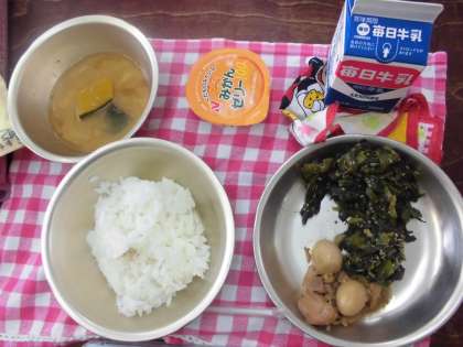 今日のメニューは、鶏肉のさっぱり煮とほうれんそうのごま煮とかぼちゃのみそ汁です。