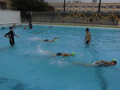 6年生は50m、4,5年生は25m泳げるようにがんばるのが、めだか教室です。