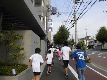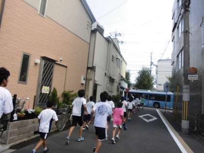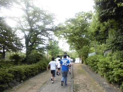 昨日は朝に雨が降っていたので、体育館でしか練習できなかったのですが、今日は晴れていたので、校外に練習をしに行きました。
