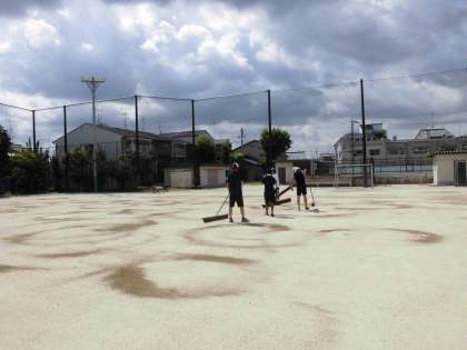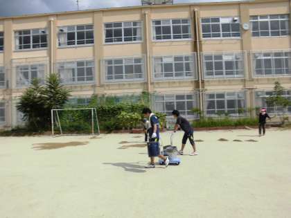 運動場は、雨が降っても、できるだけ水たまりができないように土入れをしました。