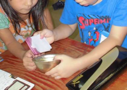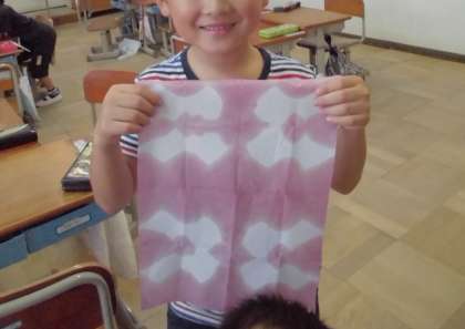 和紙を広げてみると、きれいな模様ができていて子どもたちは大喜びです。
