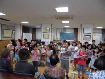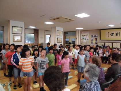 次に歌を歌いました。「月」「とんぼのめがね」「虫の声」など、年配の方が知っておられる曲を歌ったので、一緒に口ずさんでいただけました。