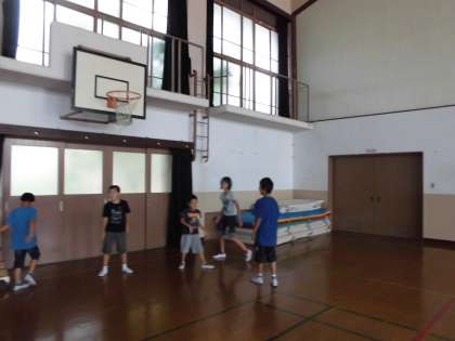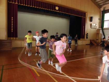 体育館では大縄をしたり、おにごっこをしたりしています。