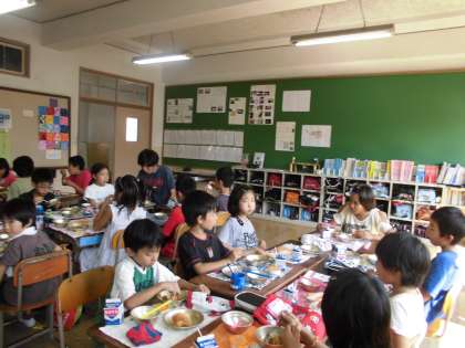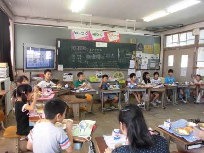 それぞれの部屋で、いつもと違う雰囲気で給食を食べています。