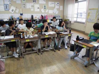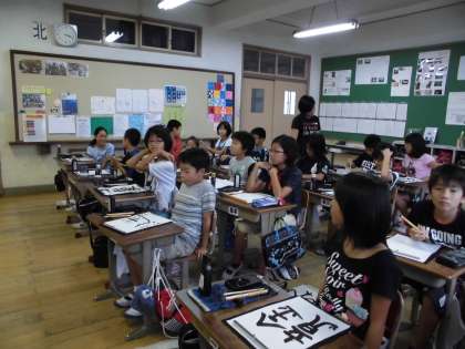 でも今回は、趣向を変えて、書道と美術を組み合わせた「アート書写」に5,6年生が取り組みました。