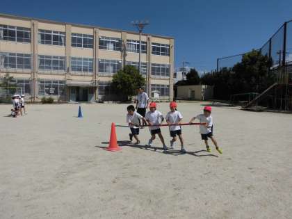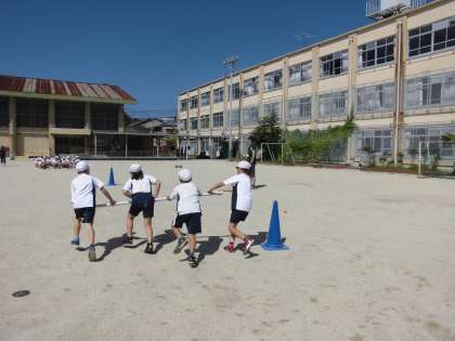 一番外側の子は、遠心力に負けないようにチームの誰よりも速く走らなければなりません。