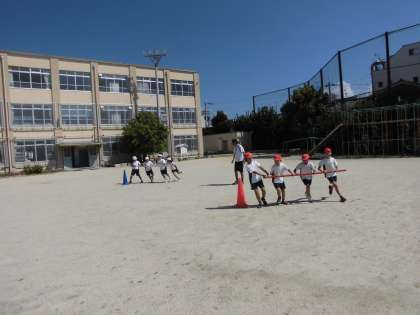 一方、最も内側の子は、コーナーで自分が支点となって棒を支えなければならない見た目より難しい競技です。