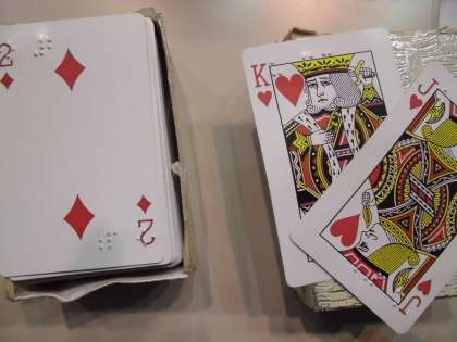 点字が打ってあるトランプや、印のついているオセロゲームを見せていただきました。