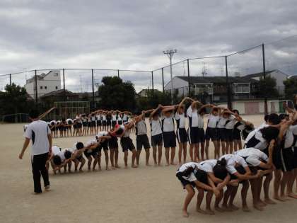 音楽に間に合わなかったり、一人技やグループ技が失敗したりと、完成まではまだまだ遠い道のりですが、何とか今日「運動場デビュー」を果たしました。