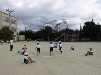 本番の、1年「ゴールをめざして、ゴーゴ・ゴー」と2年「ハラハラドキドキ 落としちゃダメよ!」の障害物競走をお楽しみに!!