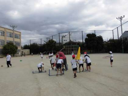 カラーコーンを回ったり、フラフープを通り抜けたり、ハードルをくぐったりと大変ですが、どの子も楽しみながら練習できました。