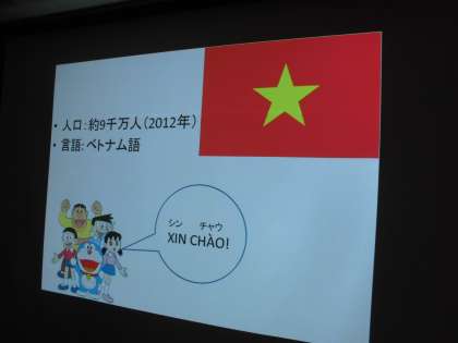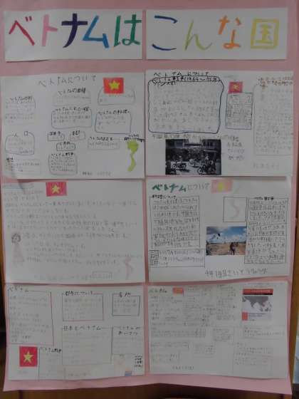 ベトナムのことについては、両校の子どもたちは、事前に調べ学習をしていましたが、ほとんど初めて聞く話ばかりで、みんなメモを取りながら興味深く、次のようなことを聞きました。