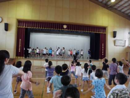 舞台の上のダンス係の子も、初めは照れくさそうでしたが、さすがに練習してきただけあって、素晴らしいお手本を披露できました。