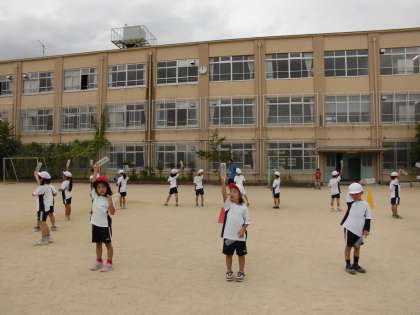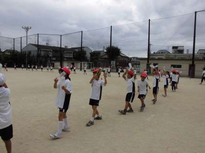 初めて運動場に出た時は、並ぶ場所や友達との間隔に戸惑いましたが、徐々に慣れてきて、体育館と同じように踊れるようになってきました。