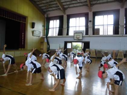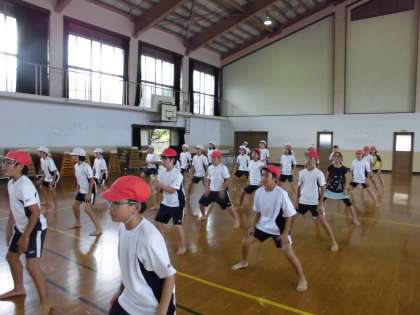 みんなの心を一つにして、音楽に合わせて踊る楽しさが分かってきたのか、騎馬戦の練習と同様、大変真剣に取り組んでいます。
