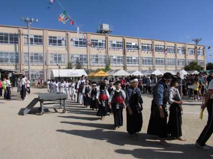 野球部の子はユニフォームを着て、剣道部の子は胴着を着て入場しました。