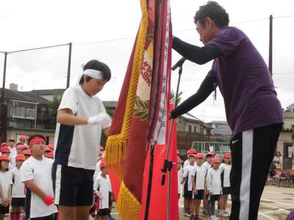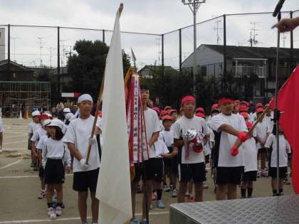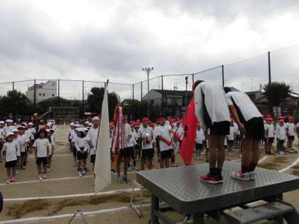 全校練習の時とは違い、多くの方に見守れているのでやや緊張気味ですが、みんなが「これからがんばるぞ!」という気持ちで開会式にのぞんでいます。