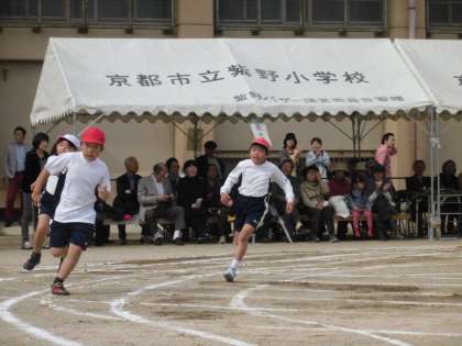 雨のおかげで運動場がしっとり湿ってくれたので、スリップせずスムーズに回っています。