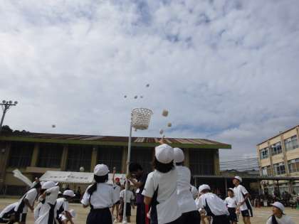 1年生から3年生までは、どこから投げてもいいのですが、3年生以上は円い白線の外から投げるというルールです。