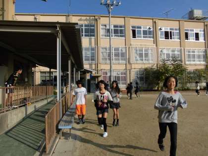 下の写真は、陸上部ではない6年生が校庭を走っている写真です。