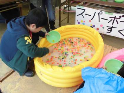 運動場や体育館では、様々なゲームや模擬店を子どもたちは楽しみました。