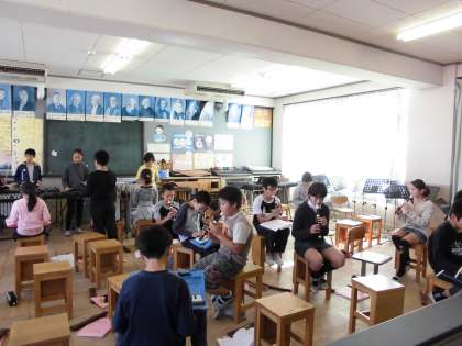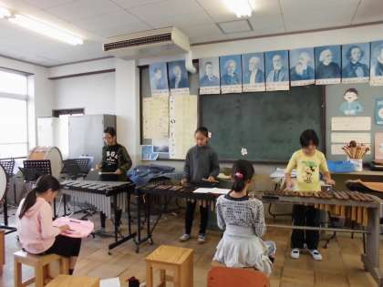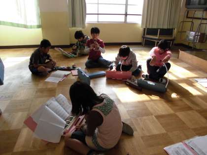 5年生は音楽で、合奏と合唱をします。