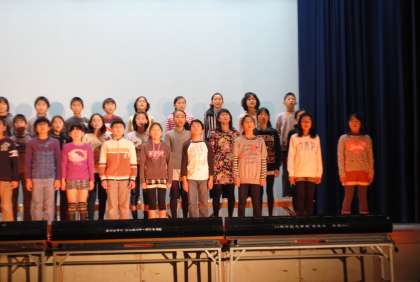 最初の歌「笑顔でいよう」と「夜空ノムコウ」では、一人一人の表情が大変素晴らしく、きれいな歌声が体育館中に響きました。