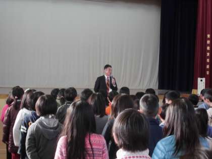朝会では、校長先生から「新しい年が始まりました。何か1つ自分の目標を決めて、その目標に向かって精一杯努力していきましょう」という話がありました。